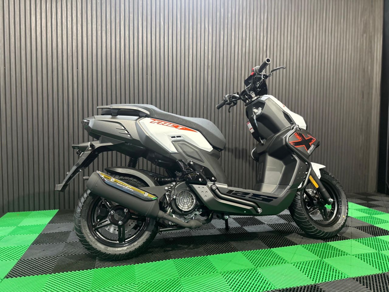 Rugged Adventure Styling: Featuring an exposed tubular frame, crash bars, and aggressive bodywork, the Fact X brings the "adventure bike" look to the 125cc scooter segment.