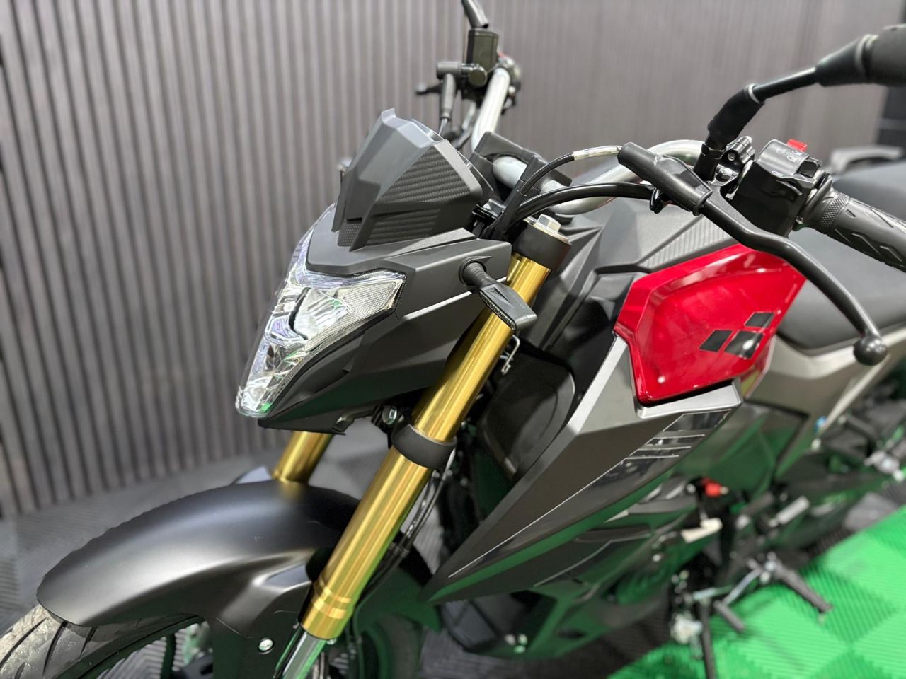 Q: Do the gold forks actually improve the ride? A: Yes. Upside-down (USD) forks generally offer better stability and rigidity under braking compared to traditional telescopic forks. While they look fantastic, they also contribute to a more planted and confident feel on the road.