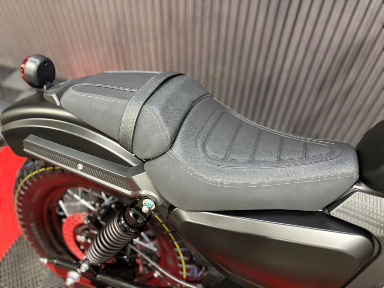 Comfortable Ergonomics: A wide, well-padded seat and a spacious flat floorboard allow for a relaxed, upright riding posture suitable for riders of various heights.