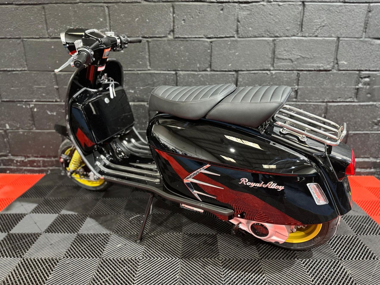 Q: Is the body really metal? A: Yes. Unlike most modern scooters which use plastic panels on a tubular frame, the Royal Alloy GP series uses a substantial amount of pressed steel for the bodywork, giving it an authentic vintage feel.