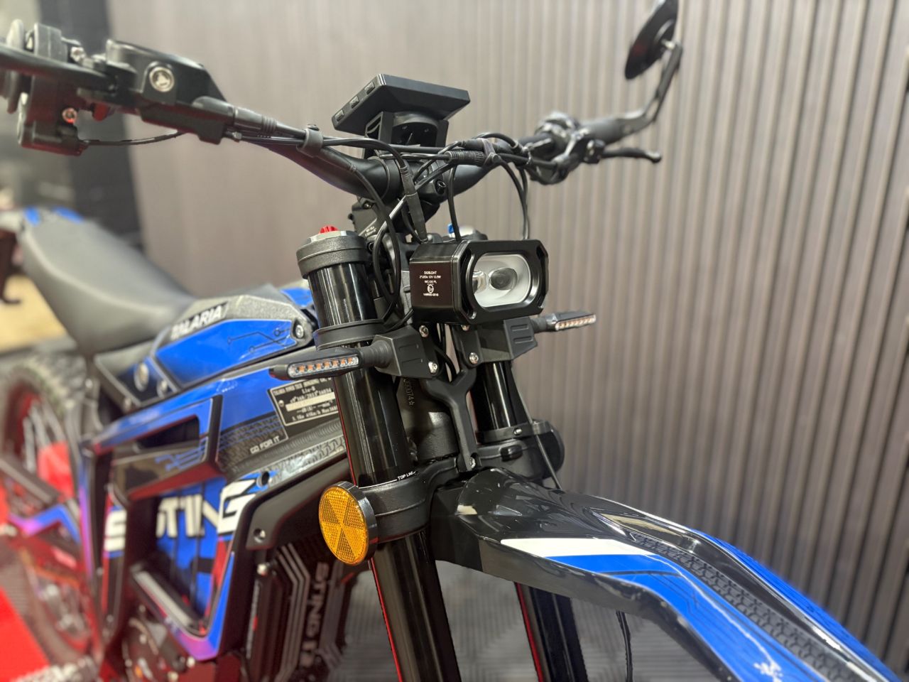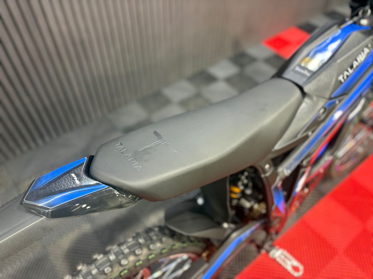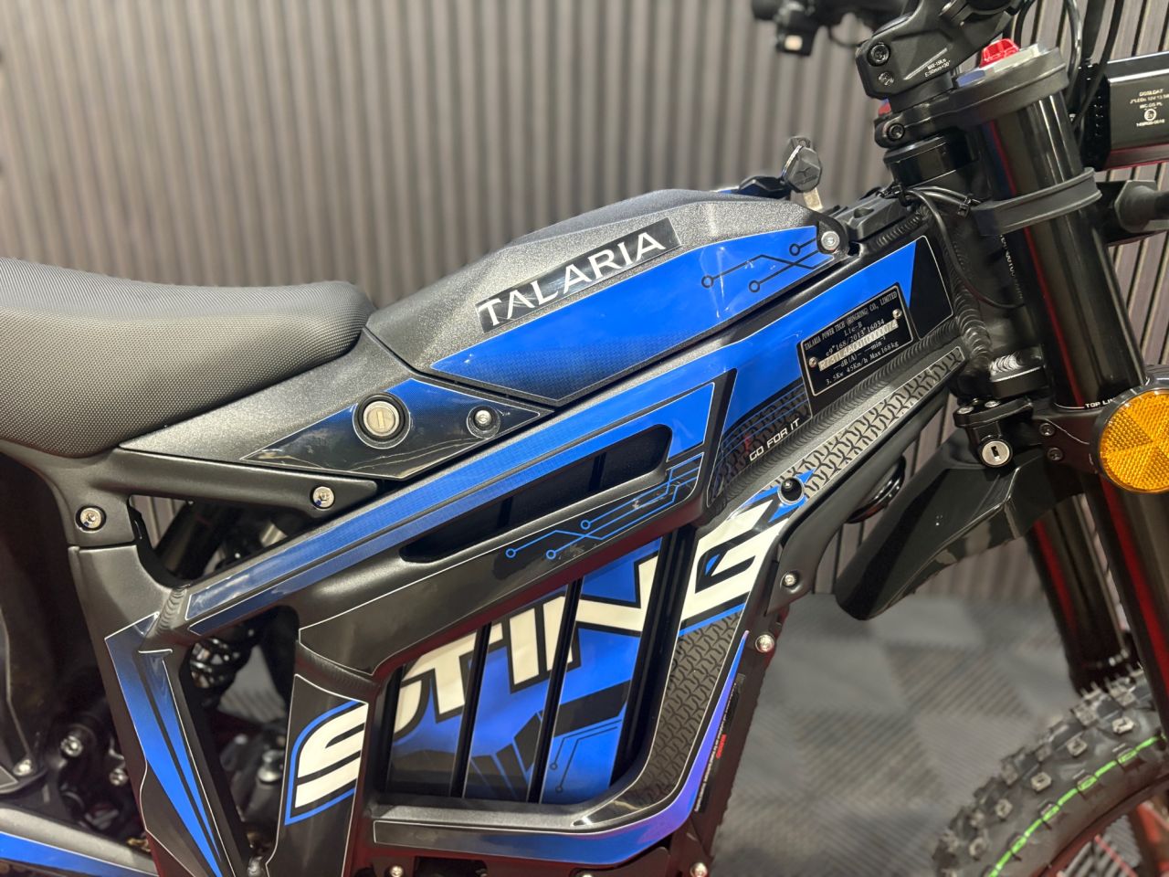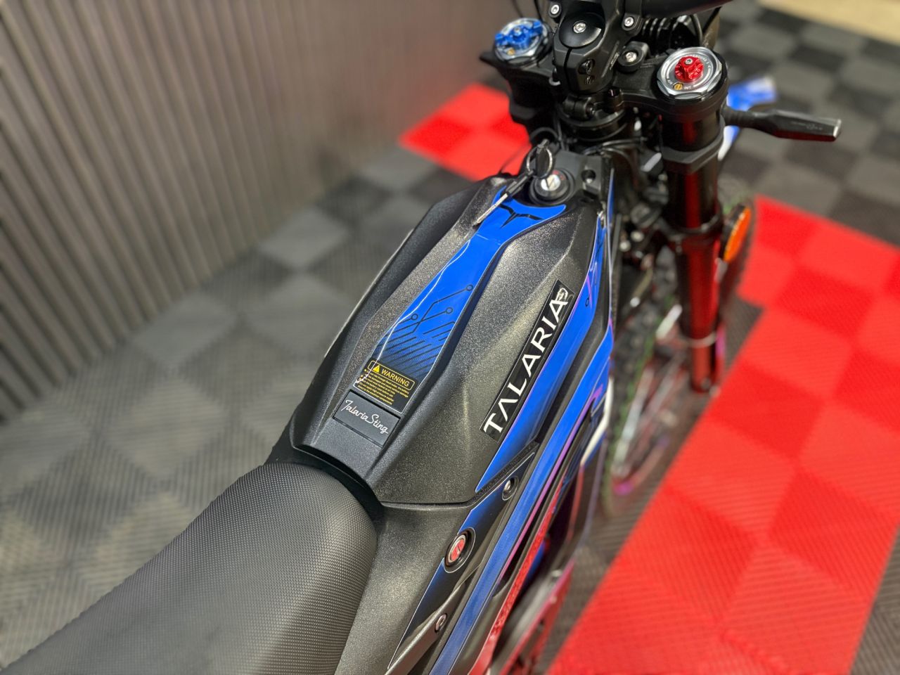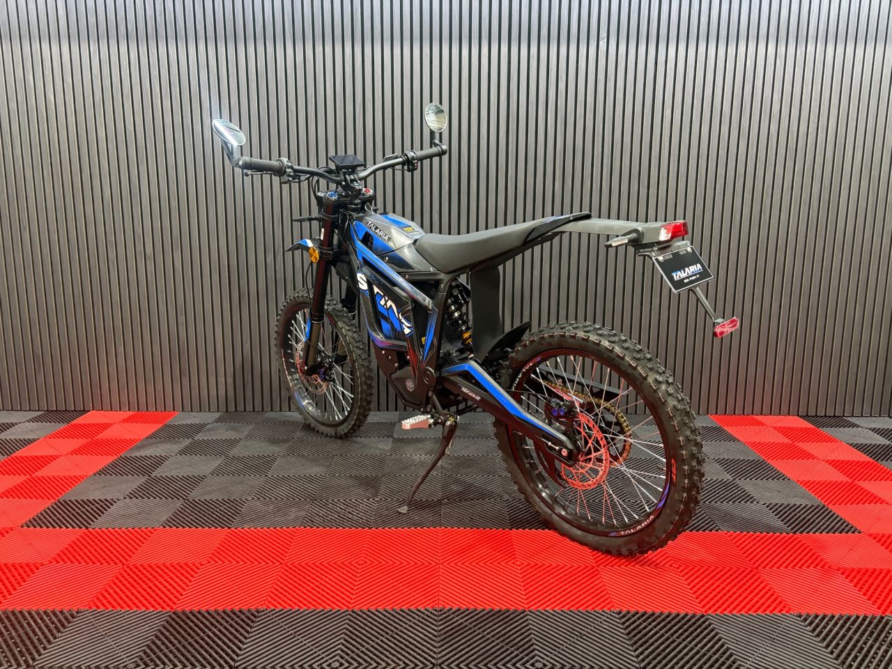 The 2026 Talaria Sting R in Black/Blue is the visual definition of electric performance. The primary bodywork is finished in a sinister, satin Black that hides dirt and looks aggressive on the street.